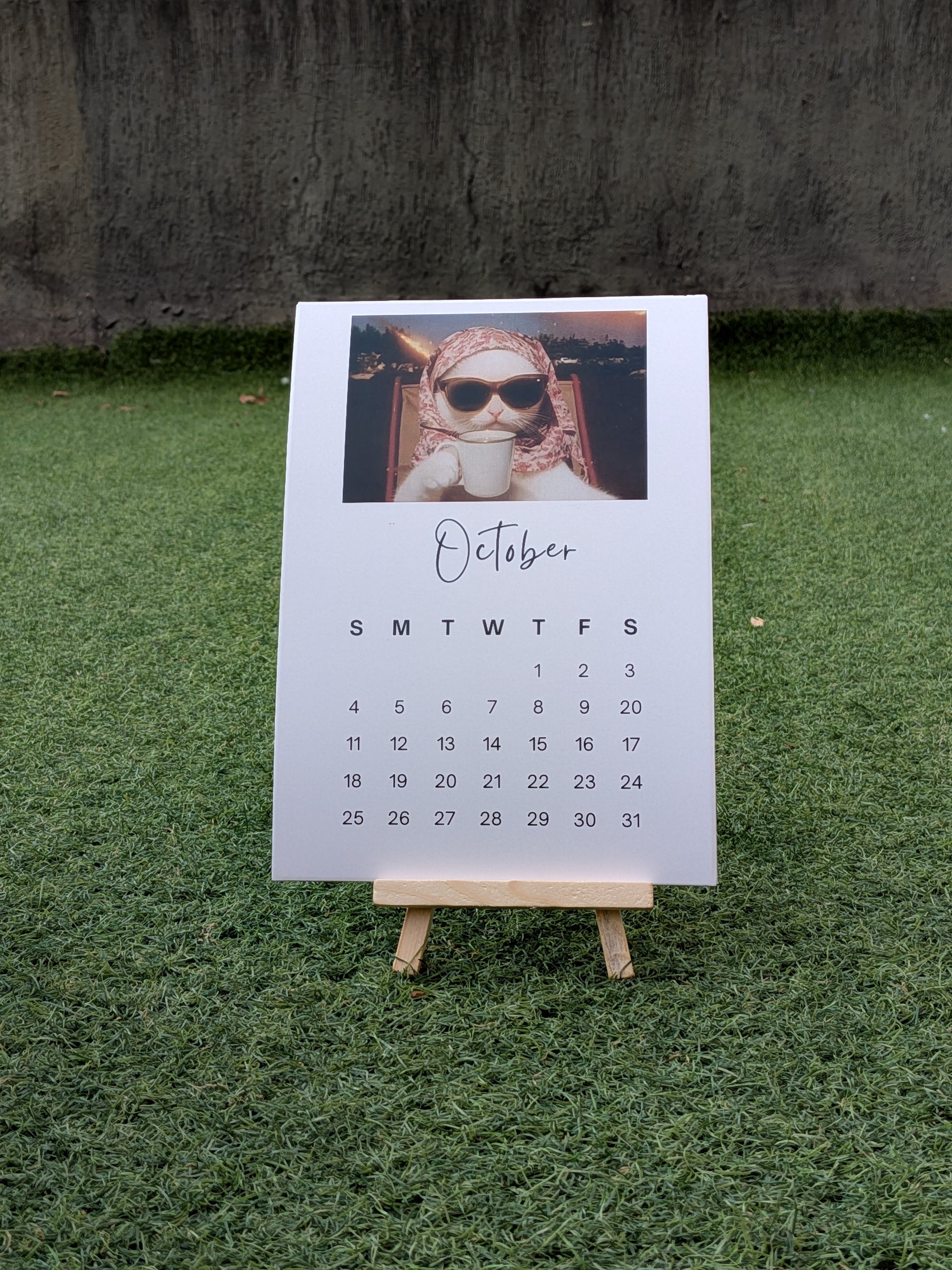 From dramatic stares to chaotic energy, each month features a meme-worthy cat moment guaranteed to make you smile (or laugh out loud). Designed in A5 size and paired with a solid wooden stand, this calendar adds humor to your desk without compromising on style.