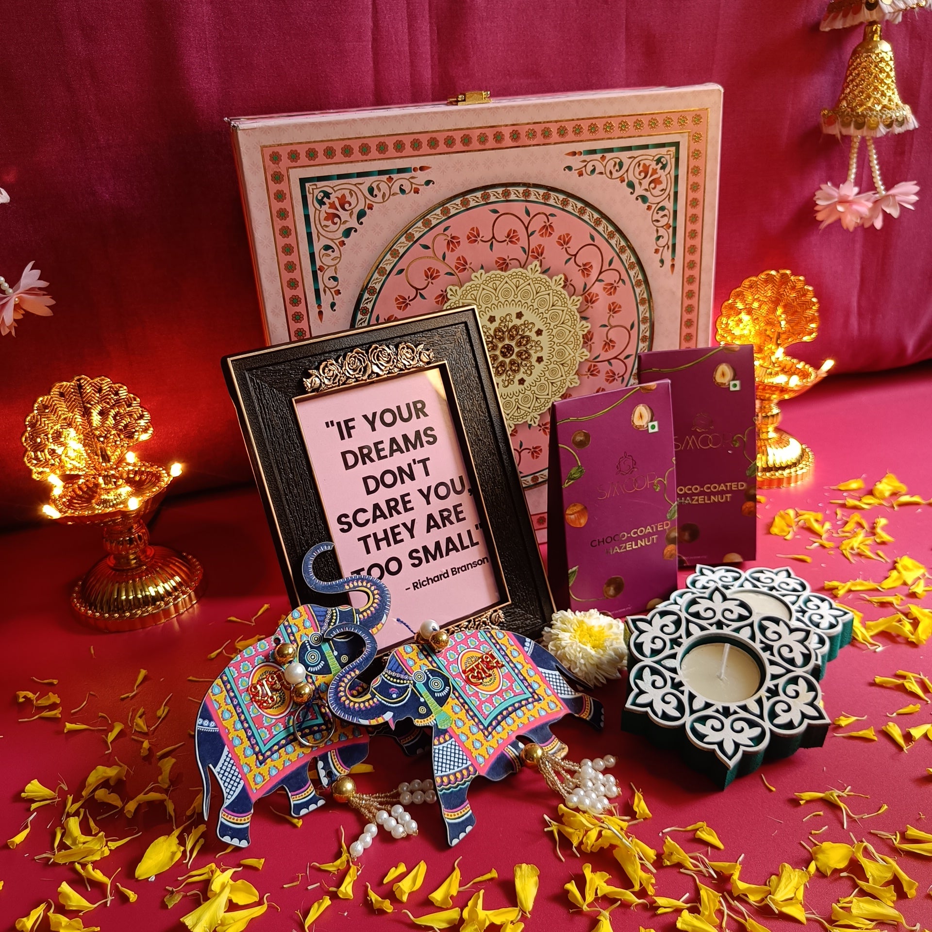 Celebrate the festival of lights with our Ujjwal Utsav Diwali Hamper, a perfect balance of tradition and motivation crafted to delight both the heart and soul. Thoughtfully curated with artisanal chocolates, festive décor, and a meaningful keepsake, this hamper is more than a gift—it’s an expression of joy, prosperity, and good wishes.
